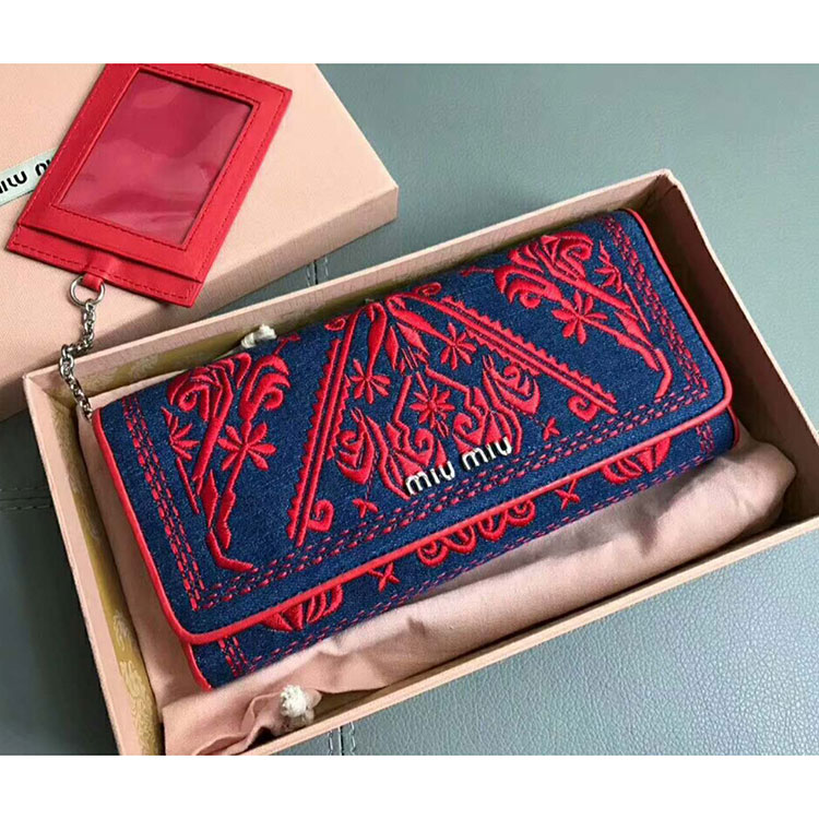Miu Miu DENIM WALLET comes with: serial numbers, Miu Miu box, care booklet, Miu Miu dust bag, Miu Miu Card, tag