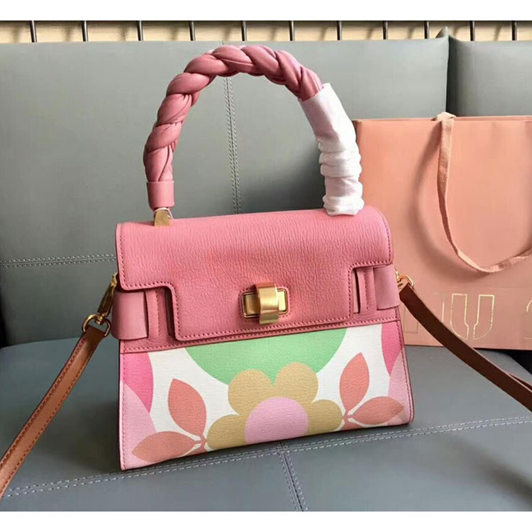 2018 Miu Miu MADRAS LEATHER MIU CLICK HANDBAG