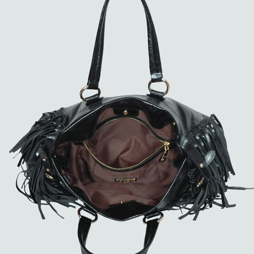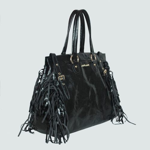 Miu Miu Shiny Leather Tassel Tote Bags 90265 Black