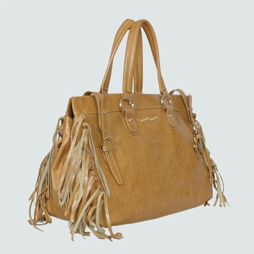 Miu Miu Shiny Leather Tassel Tote Bags 90265 Wheat