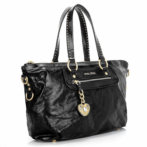 Miu Miu Shiny Leather Tote Bag 6683 Black comes with:serial numbers, care booklet, miu miu dust bag, miu miu Card, tag