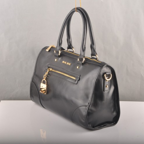 Miu Miu Shiny Leather Tote Bags 90303 Black