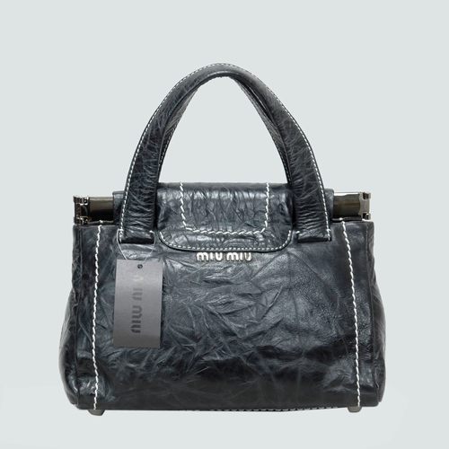 Miu Miu Shiny Leather Tote Flap Bags 90280 Black