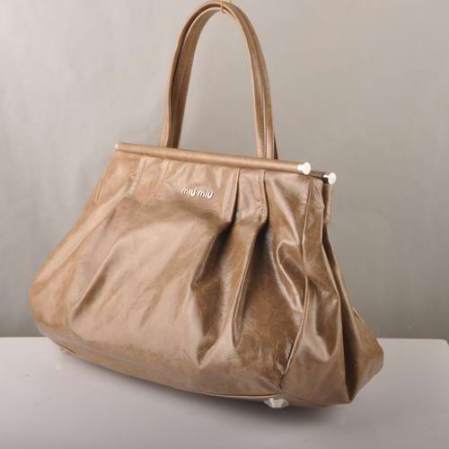 Miu Miu Tote Handbags Oil Wax Leather 8001 Coffee