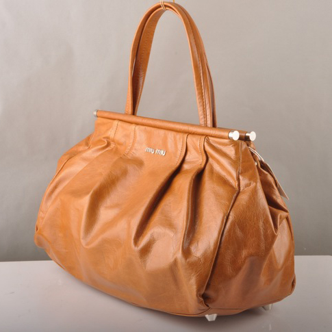 Miu Miu Tote Handbags Oil Wax Leather 8001 Khaki