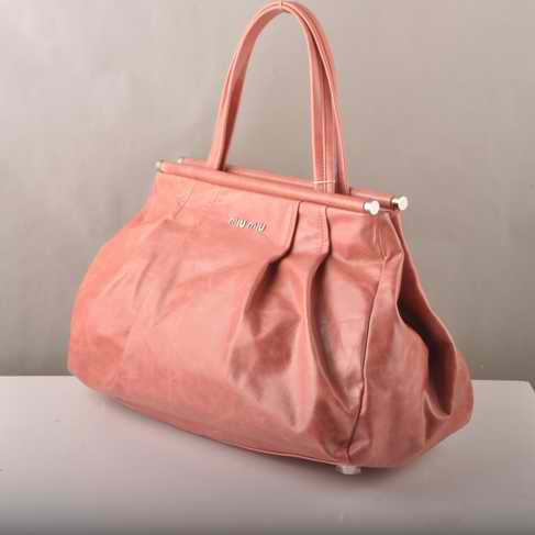 Miu Miu Tote Handbags Oil Wax Leather 8001 Pink