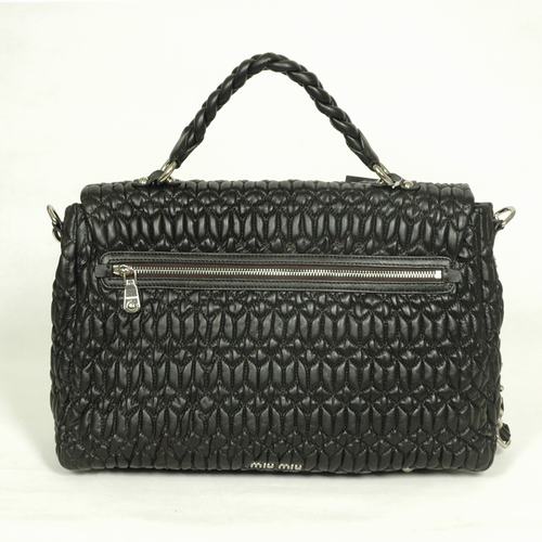 Miu Miu Tote Handbags Quilted Lambskin Leather 8667 Black
