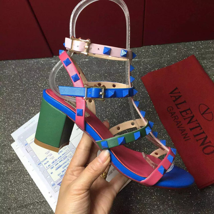 2016 Valentino women Sandals shoes with rivet Heel Height 6.5cm