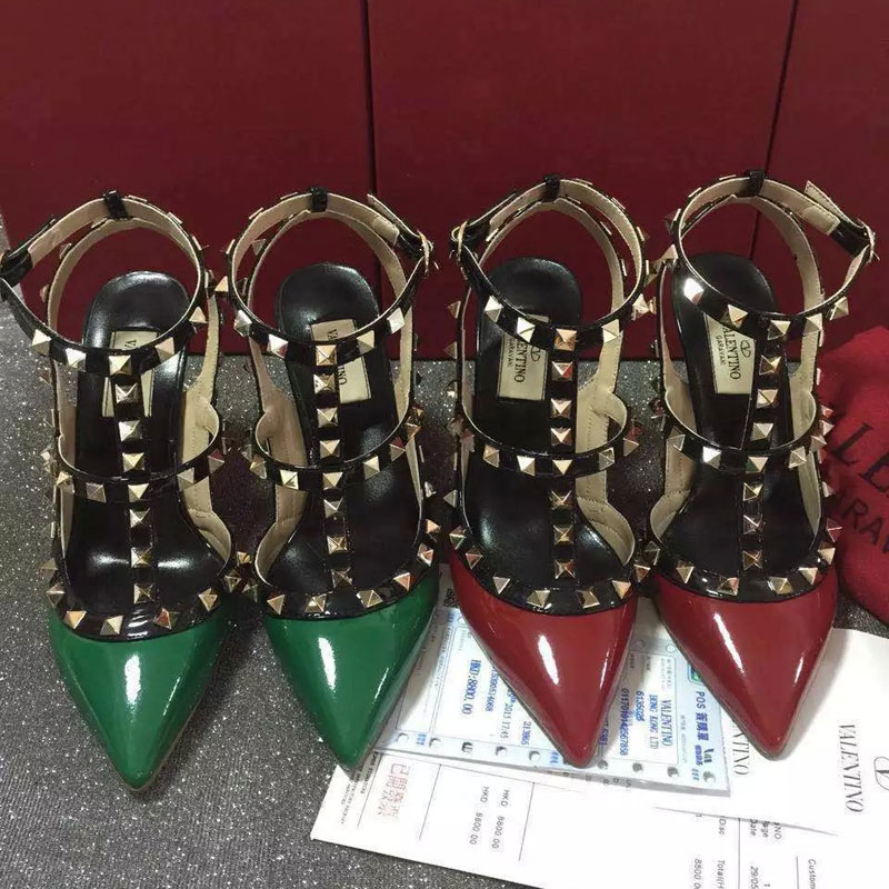 2016 Valentino women shoes in Patent leather with Rivet Heel Height 9.5cm