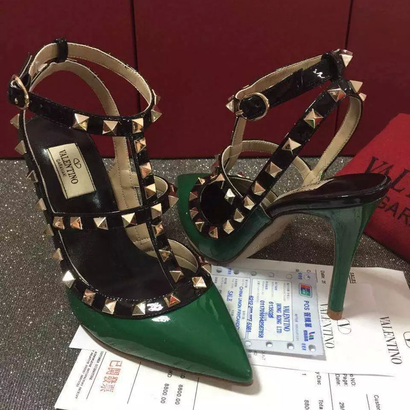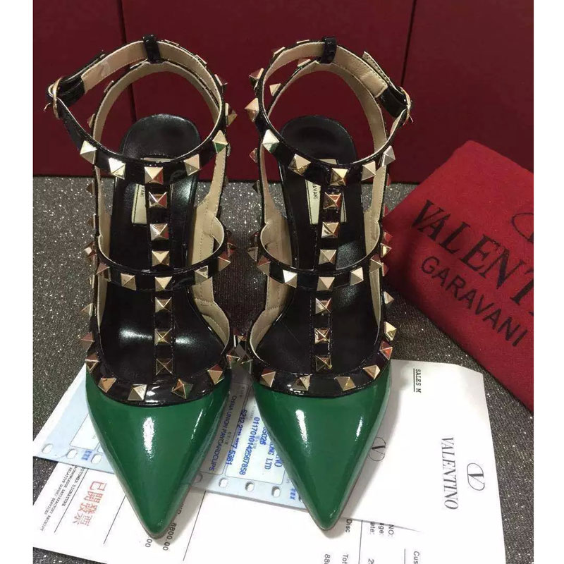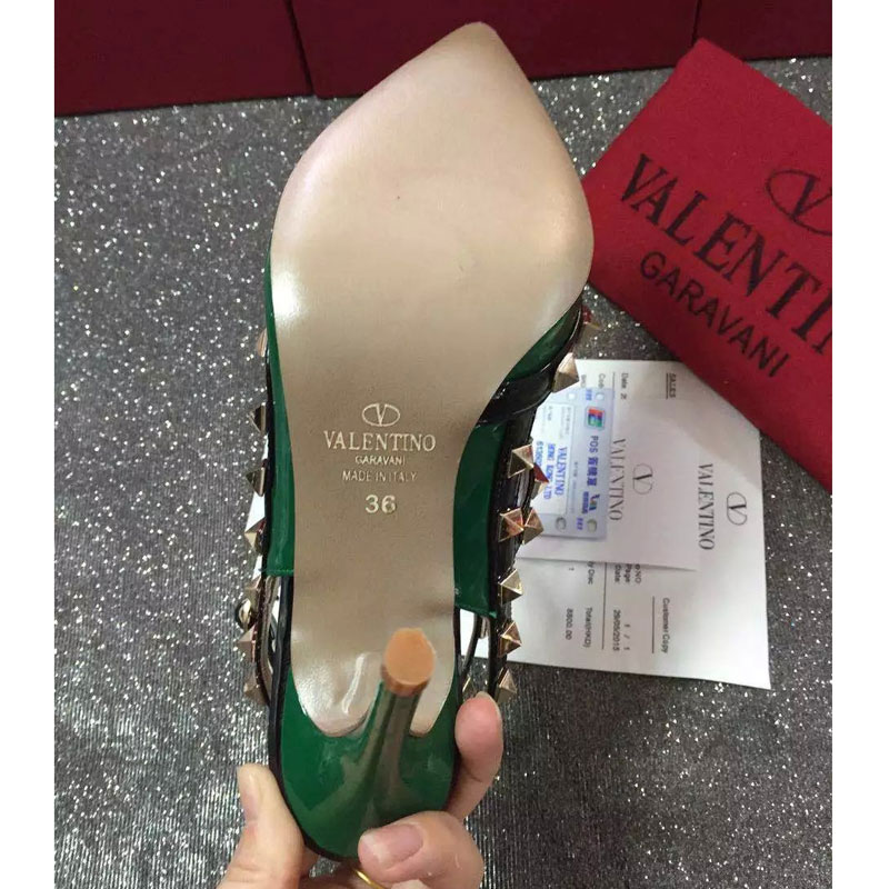 2016 Valentino women shoes in Patent leather with Rivet Heel Height 9.5cm