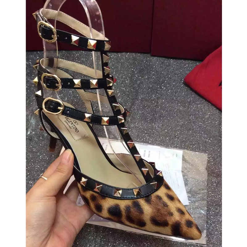 2016 Valentino women shoes in horsehair with Rivet Heel Height 6.5cm