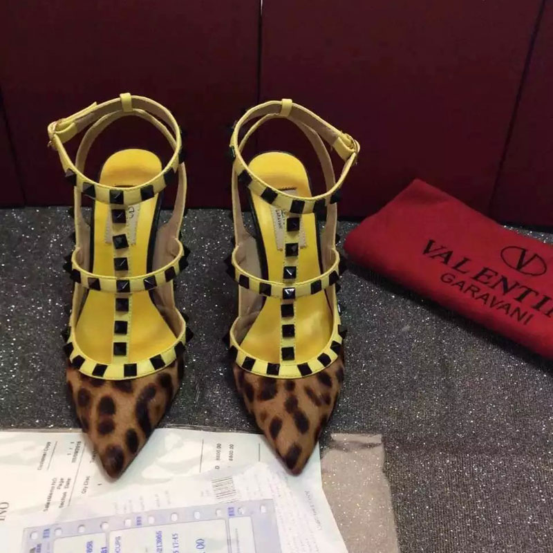 2016 Valentino women shoes in horsehair with Rivet Heel Height 9.5cm