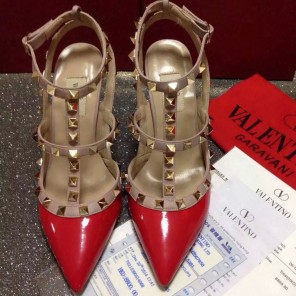 2016 Valentino women shoes in patent leather with Rivet Heel Height 9.5cm