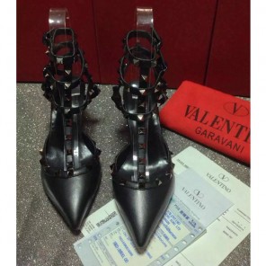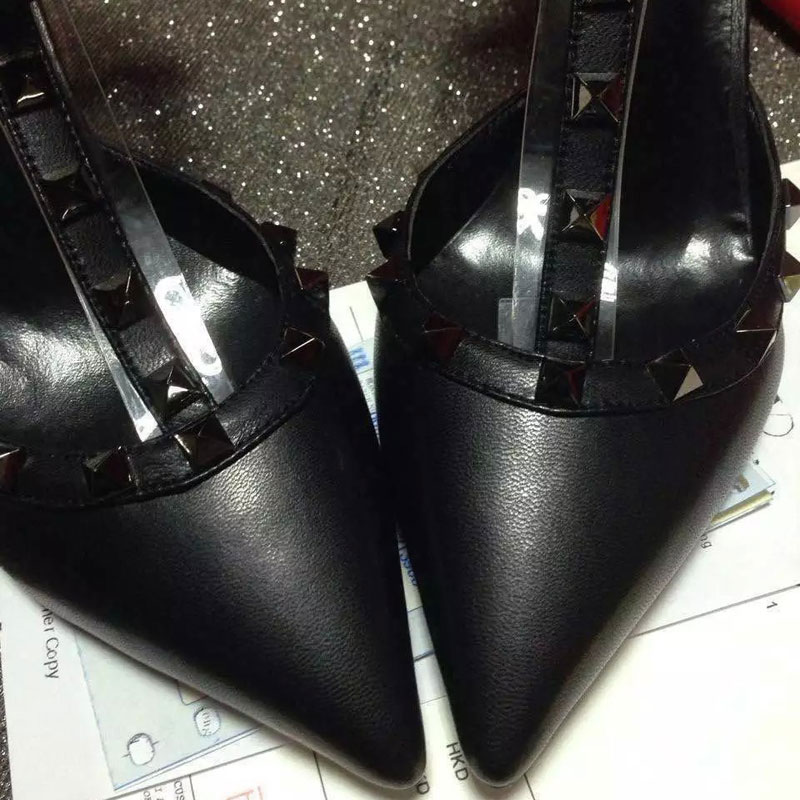 2016 Valentino women shoes in sheepskin leather with Rivet Heel Height 6.5cm