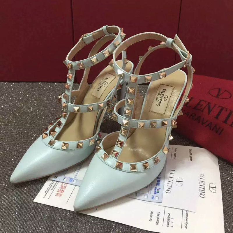 2016 Valentino women shoes in sheepskin leather with Rivet Heel Height 9.5cm