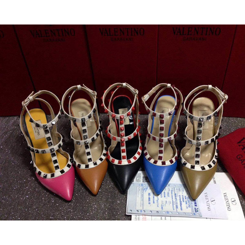 2016 Valentino women shoes in sheepskin leather with Rivet Heel Height 9.5cm