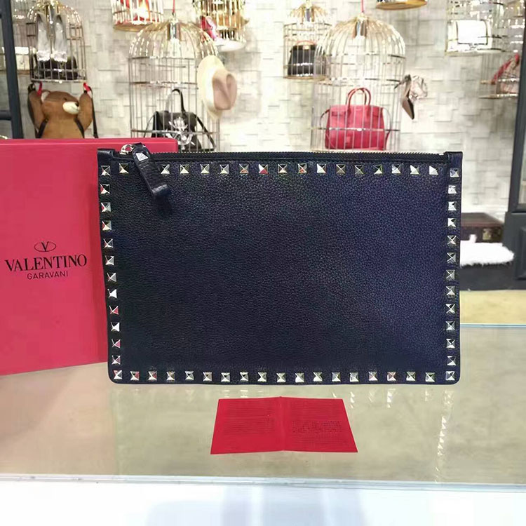Valentino Garavani Rockstud clutch comes with: Valentino box, serial numbers, care booklet, Valentino dust bag, Valentin Card, tag.