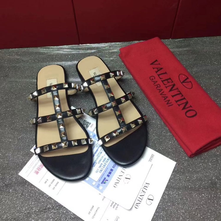 2017 Valentino women Flat shoes in Lambskin leather with rivet