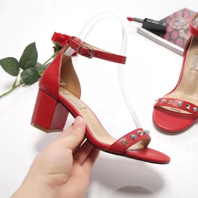 2017 Valentino women Sandals in Calfskin leather with rivet Heel Height 5.5cm