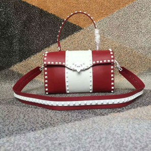 Valentino Garavani Free Rockstud small single-handle bag in calfskin with central leather band.