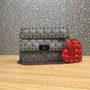 Valentino Garavani Rockstud Spike chain bag in soft lambskin leather. Quilting technique and micro stud details. Thanks to the detachable top handle and the sliding and detachable chain strap, the bag can be worn as a shoulder/crossbody bag or carried by hand