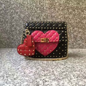 Valentino Garavani Rockstud Spike medium chain bag in Lambskin. Quilted bag with micro stud detailing. The detachable top handle and the adjustable, detachable chain strap mean the bag can be worn as a shoulder bag, a cross body bag, or carried by hand.