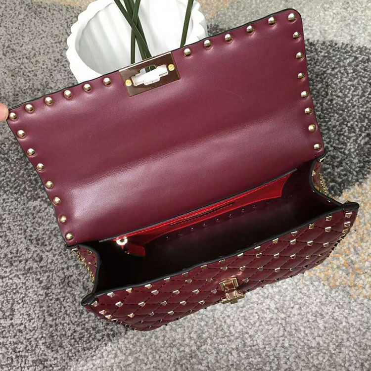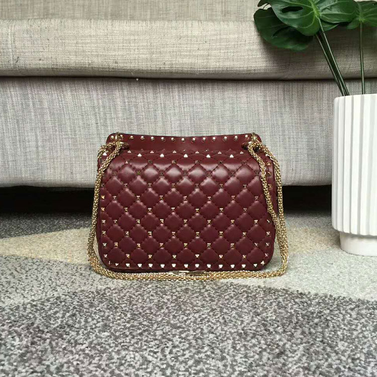 Valentino Garavani Rockstud Spike medium chain bag in Lambskin. Quilted bag with micro stud detailing. The detachable top handle and the adjustable, detachable chain strap mean the bag can be worn as a shoulder bag, a cross body bag, or carried by hand.