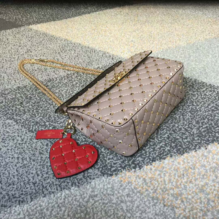 Valentino Garavani Rockstud Spike medium chain bag in Lambskin. Quilted bag with micro stud detailing. The detachable top handle and the adjustable, detachable chain strap mean the bag can be worn as a shoulder bag, a cross body bag, or carried by hand.