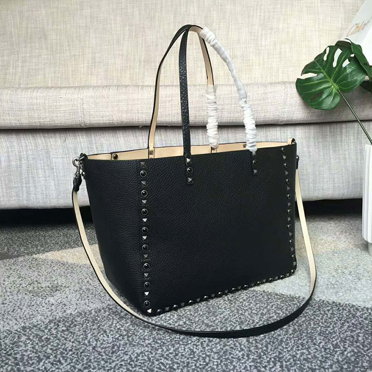 2018 Valentino Garavani Guitar Rockstud Rolling Double reversible tote in calfskin.