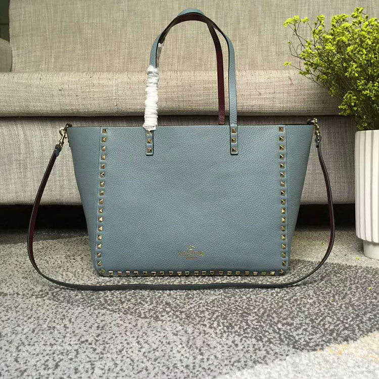 2018 Valentino Garavani Guitar Rockstud Rolling Double reversible tote in calfskin.