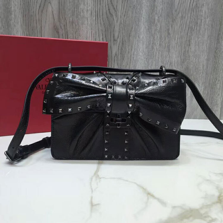 2018 Valentino MAXI BOW STRIPED SHOULDER BAG