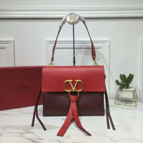 Valentino Garavani VRING shoulder bag in smooth calfskin and colored buffalo leather. This bag features a metal logo, adorned with a ring and tie.