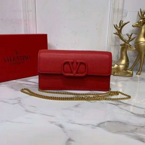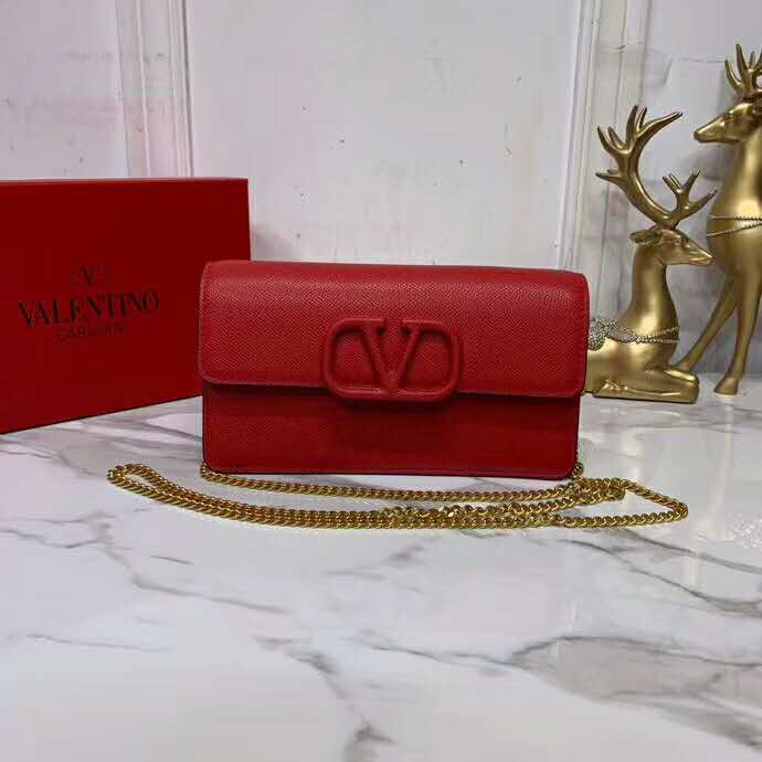 2020 VALENTINO VSLING GLOSSY CALFSKIN WALLET WITH CHAIN STRAP