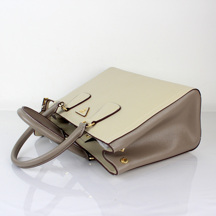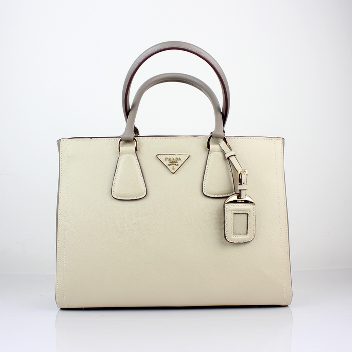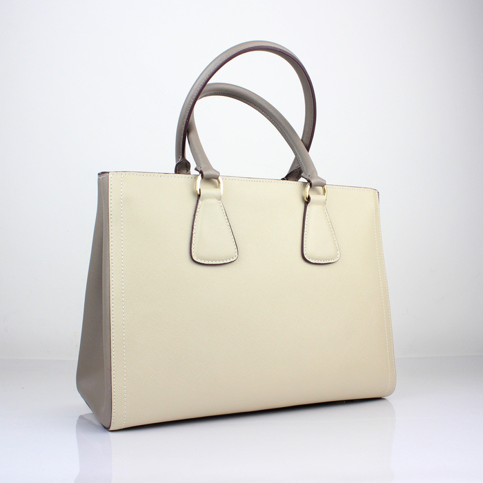 2013 PRADA BN2438 Saffiano Leather Tote Bag in Off-white with gray
