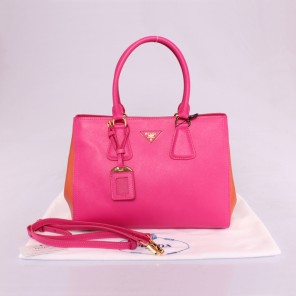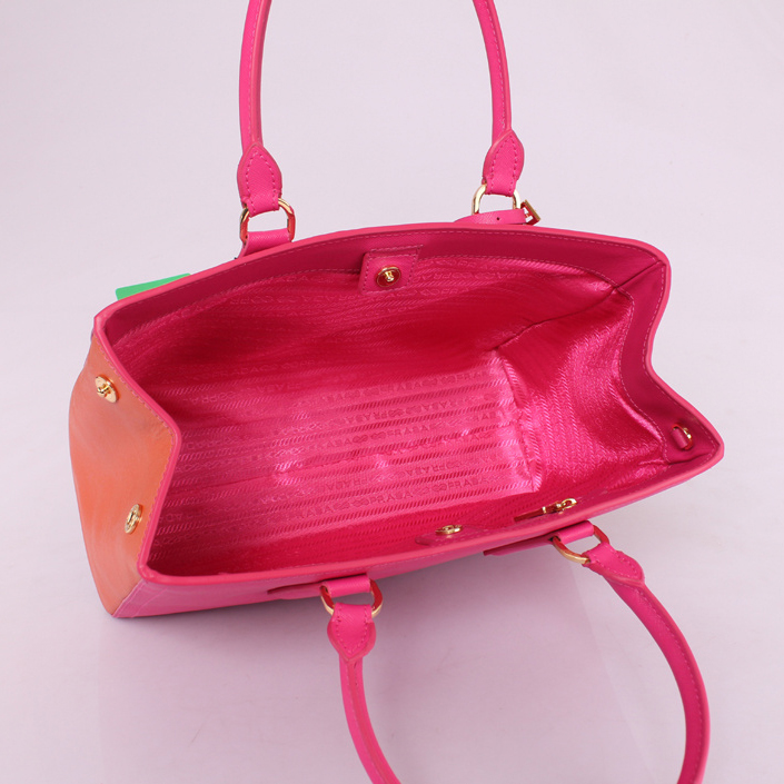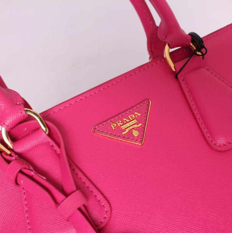 2013 PRADA BN2438 Saffiano Leather Tote Bag in Rose with chocolate