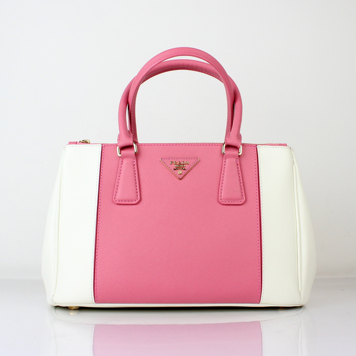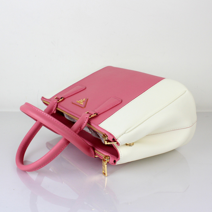 2013 Prada Saffiano Leather Tote Bag 1801 in cherry pink with White