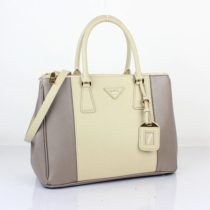 2013 Prada Saffiano Leather Tote Bag 2274 in Beige with Grey