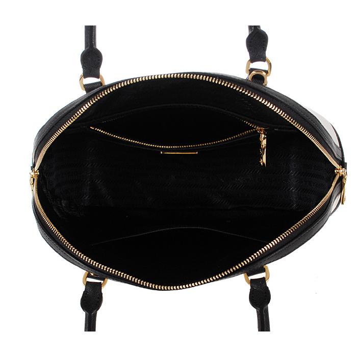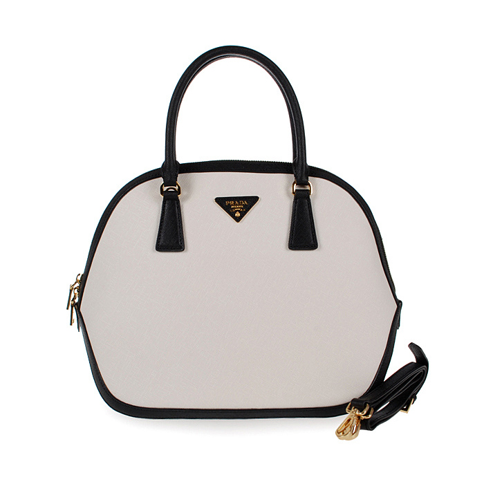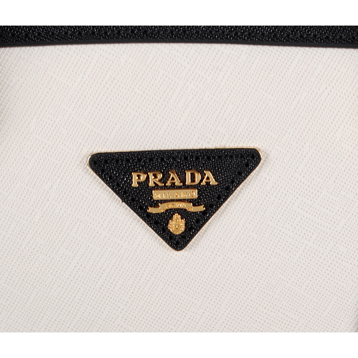 2013 Prada Saffiano Leather Tote Bag 6628 in Black with white