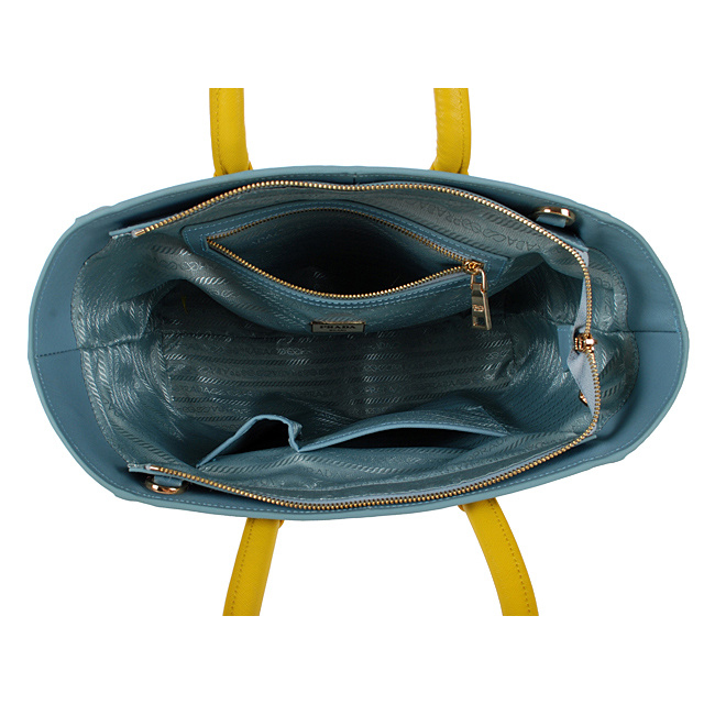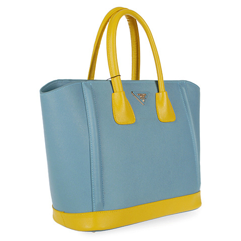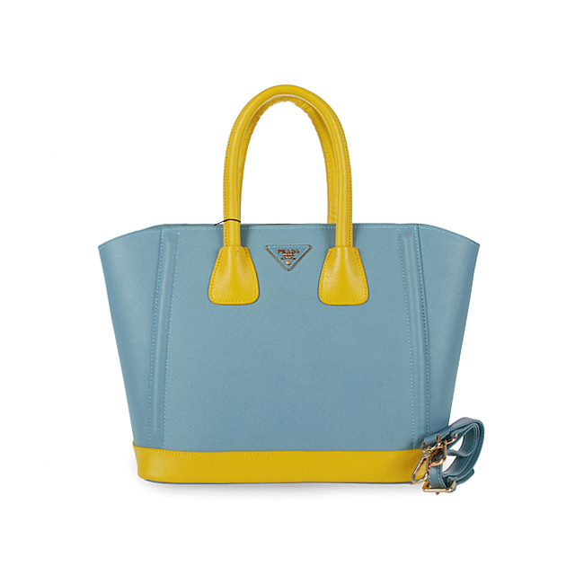 2013 Prada Saffiano Leather Tote Bags in Light blue with yellow