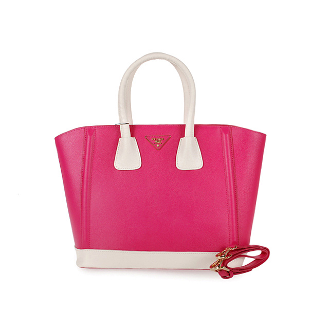 2013 Prada Saffiano Leather Tote Bags in Rose with White