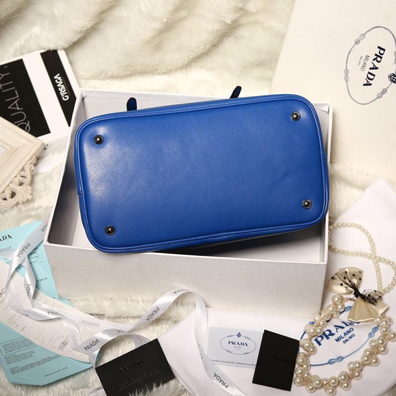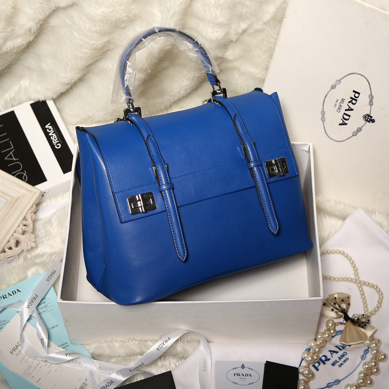 2014 Prada Lux Double Satchel Bag 348905 in Blue Original Calfskin Leather