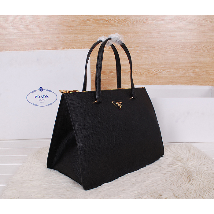 2014 Prada Saffiano Cuir Leather Tote BN2760 in Black