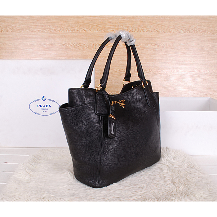 2014 Prada Vitello Daino Tote Bags Grainy Leather BR2435 Black