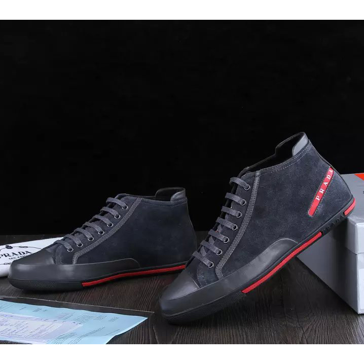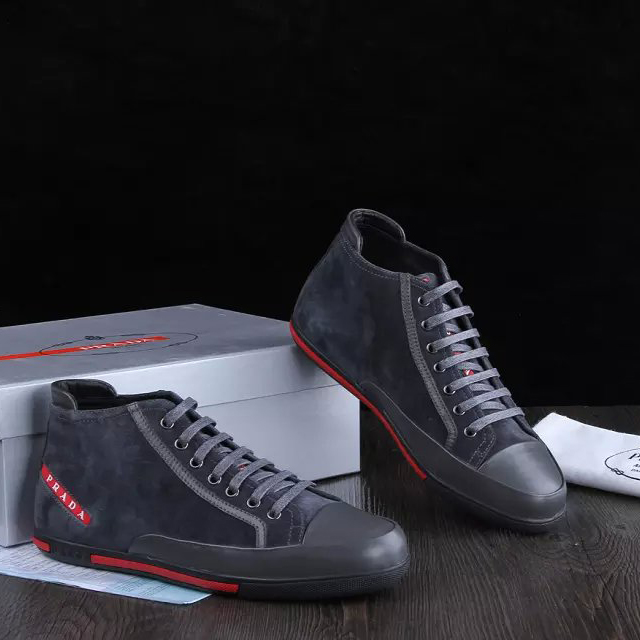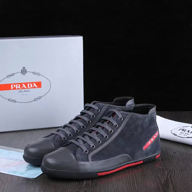 2015 Prada men Nubuck strap high-top casual shoes