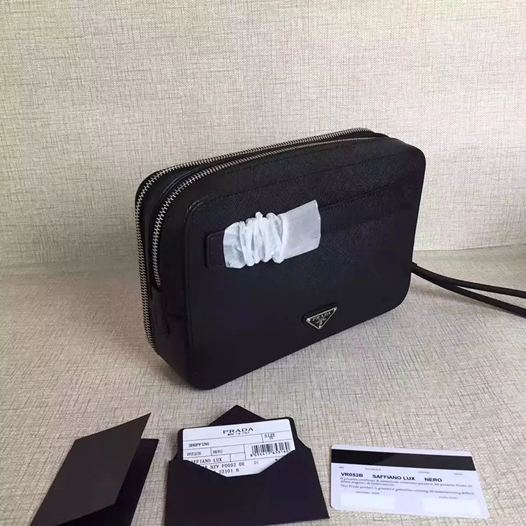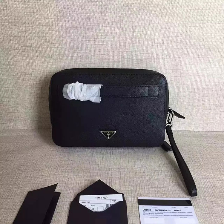 Prada Men's Clutch Come with serial numbers, Prada authenticity card, Prada dust bag, Prada Box and Prada care booklet.