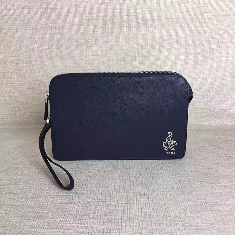 Prada Men's Clutch Come with serial numbers, Prada authenticity card, Prada dust bag, Prada Box and Prada care booklet.