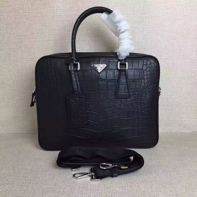 2017 Prada Original Crocodile Stripes Calfskin Leather Tote Shoulder Bag VA0891