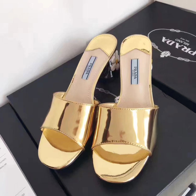 2017 Prada women Slippers in Patent leather Heel Height 5.5cm