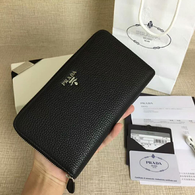 Prada Men leather wallet Come with serial numbers, Prada authenticity card, Prada dust bag, Prada Box and Prada care booklet.