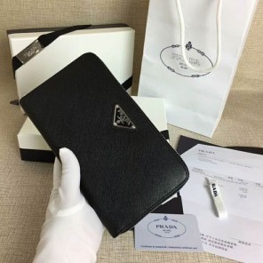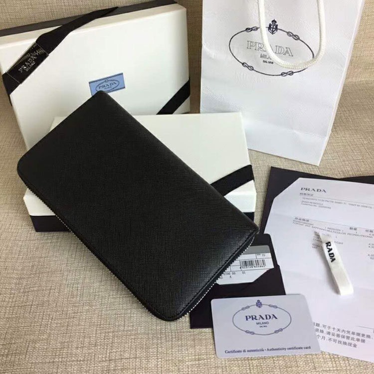 Prada Men leather wallet Come with serial numbers, Prada authenticity card, Prada dust bag, Prada Box and Prada care booklet.